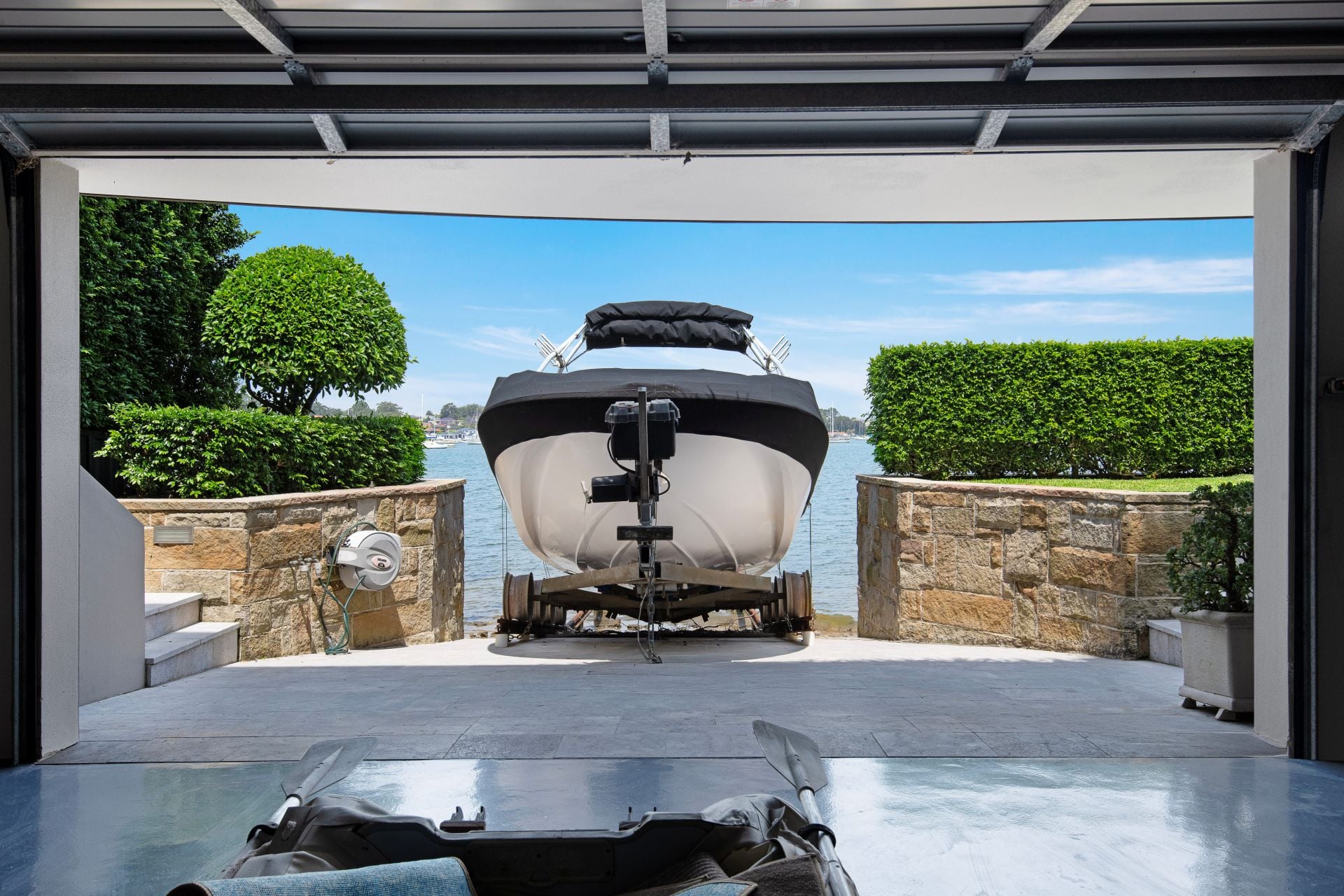 - Huge internal boathouse, dbl width electric door, boat ramp and 30m sliprails