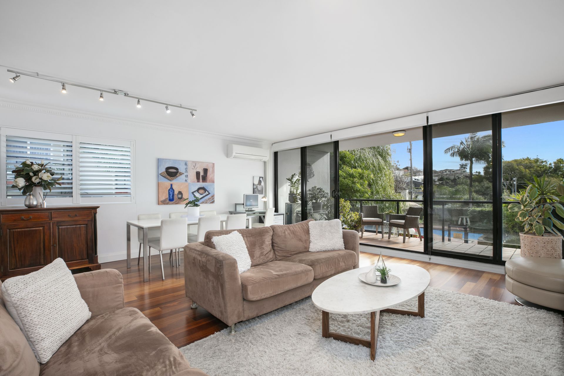 This beautifully presented apartment within the landmark 'Carina' bayside apartment complex provides spacious contemporary living with a leafy and private outlook towards the pool and gardens with a sunny north westerly aspect.